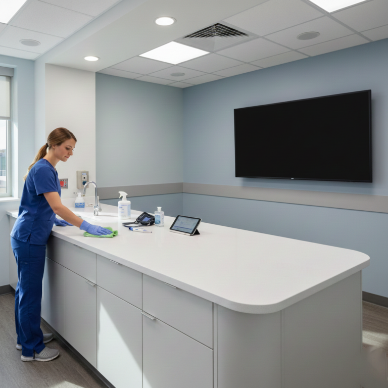 A reception desk, exam room, restroom vanity, and staff station all face different demands. Match the material to the actual use of the space. - Consider the cleaning routine
